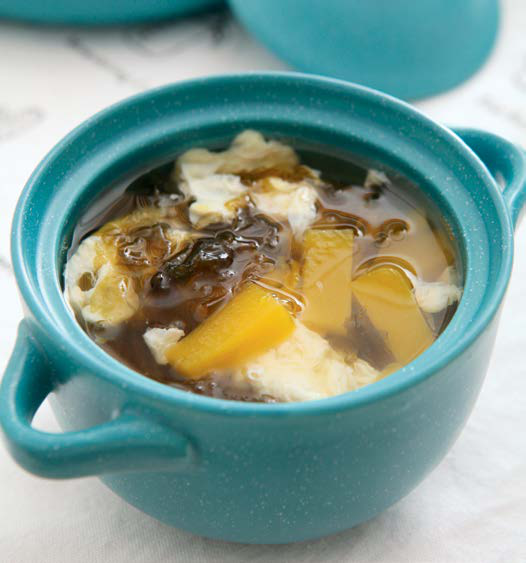 ①南瓜洗净、去皮、瓤,切块;紫菜泡发后洗净;鸡蛋打入碗内搅匀。②将南瓜块放入锅内,加水煮熟透,放入紫菜,煮10分钟,倒入蛋液搅散,出锅前放盐即可。