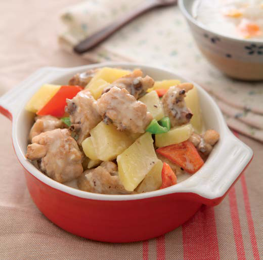 ①将鸡翅洗净,切成小块;土豆洗净去皮,切小块;青椒、红椒洗净切块。②油锅烧热,放入鸡翅块用小火煎至金黄,捞出。③放入土豆块,煎至变色;倒入鸡翅块,加水和椰浆外的所有调料,大火烧开,改小火炖5分钟,出锅时倒入椰浆即可。