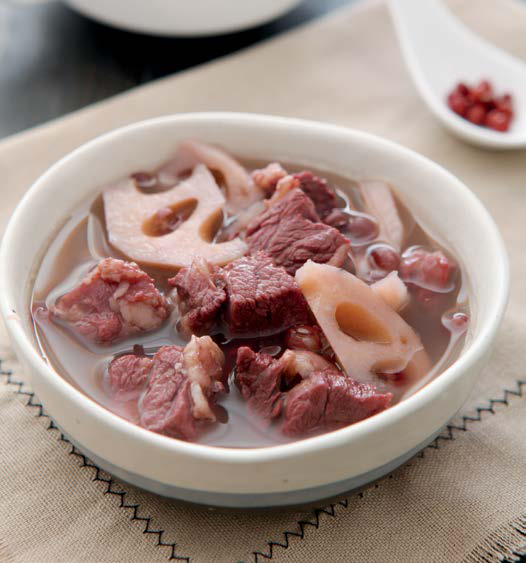 牛腩、莲藕各100克,红豆、姜片、盐各适量。