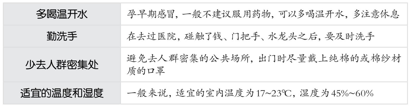 孕早期,孕妈妈的重要任务之一就是预防流产的发生。孕妈妈需要避免过度疲劳和长途旅行,避免高强度或动作幅度较大的工作,不做拉伸及压迫腹腔的动作,也尽量不去人多的地方。