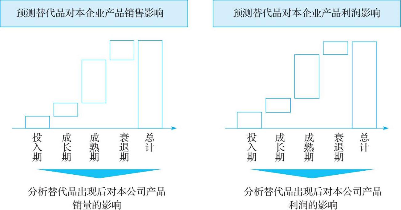 图2-4 运用二维分析法开展波特五力+利益相关者分析——替代品威胁(消费者需求满足能力对比)