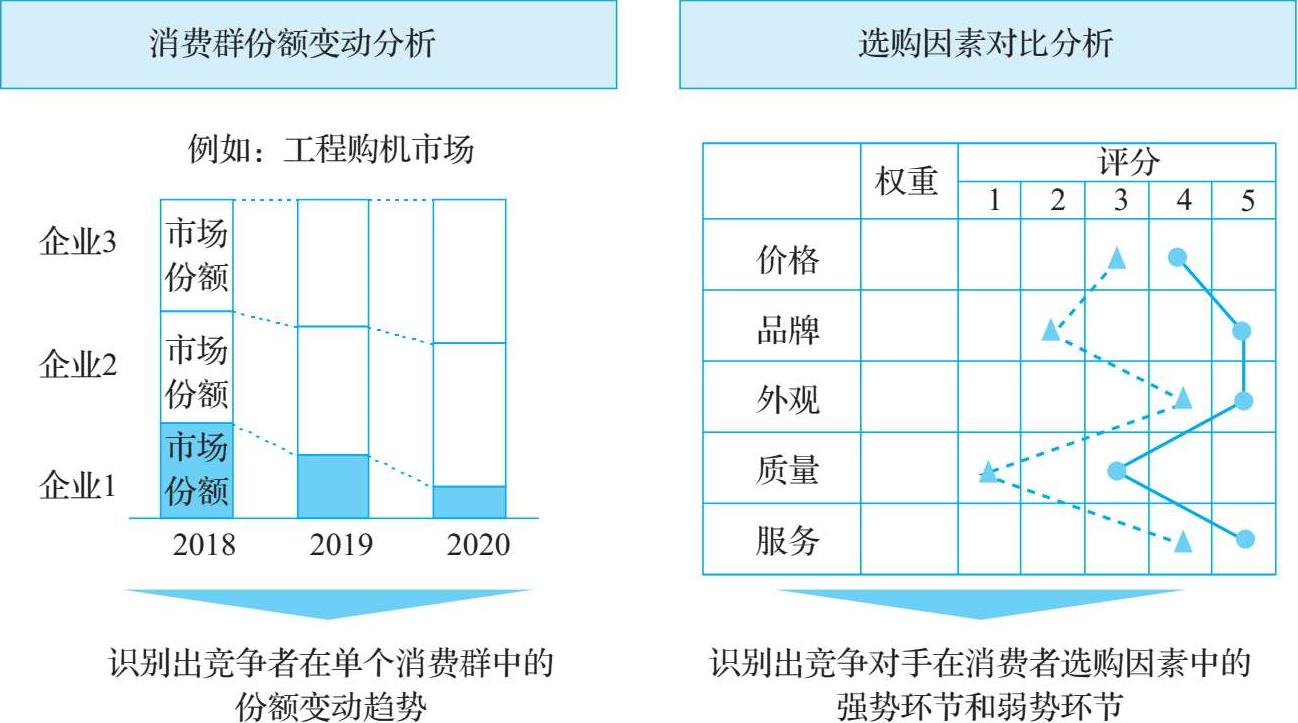图2-7 运用二维分析法开展波特五力+利益相关者分析——现实竞争对手(消费者需求满足能力对比) MQPIeGRMQVXJctSirsjR+iT1LHdnMCmsRc0QSQJwnvE2b8GTQbrIp6Ez34nU4BZ5