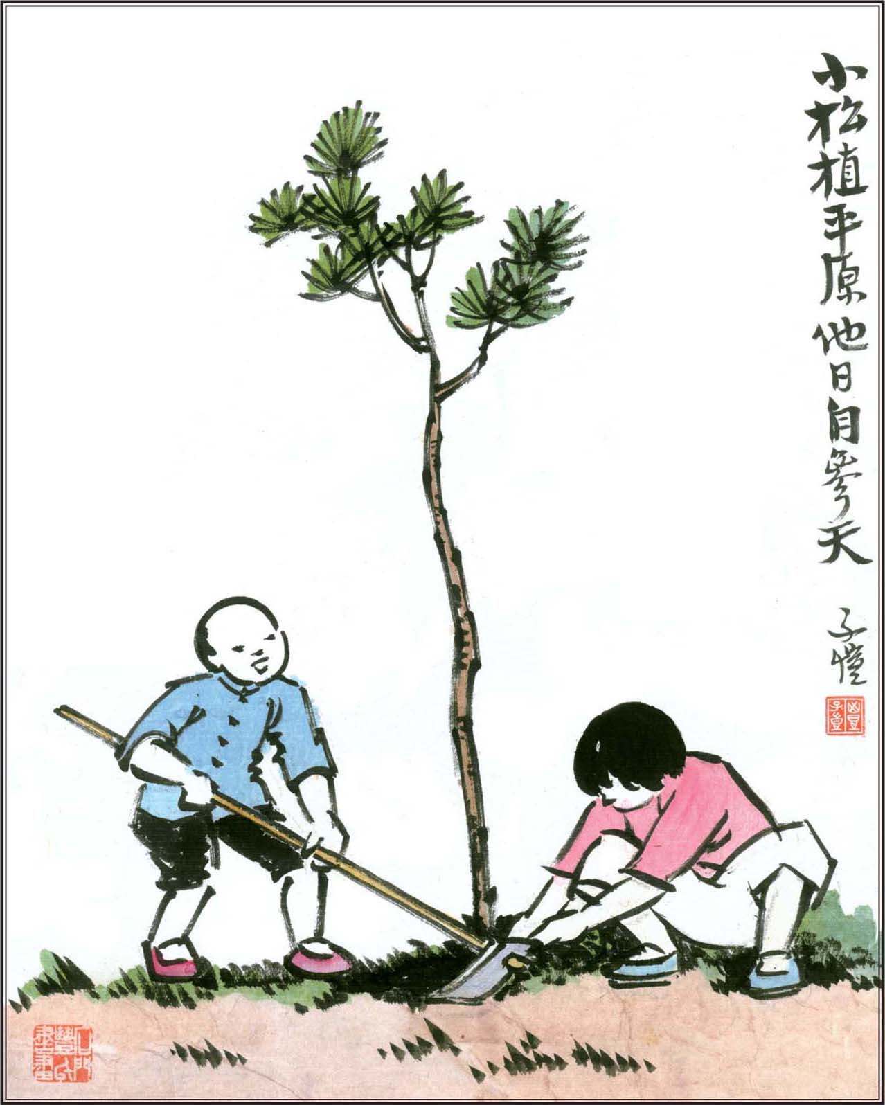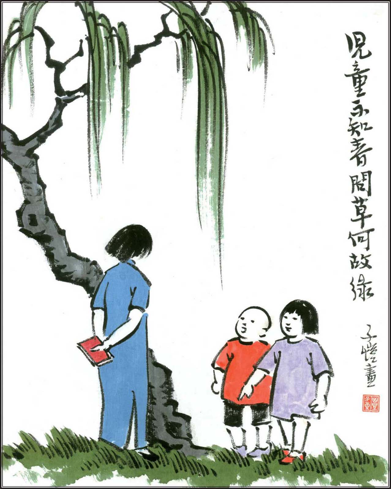 现代画家、文学家、美术和音乐教育家、翻译家,浙江桐乡人。早年曾从李叔同学习绘画、音乐。五四运动后,即进行漫画创作。1921年去日本。回国后先后在上海、浙江、重庆等地从事音乐和美术教学。画风朴实,别具风格,影响深远。绘画作品有:《子恺漫画》《护生画集》等。