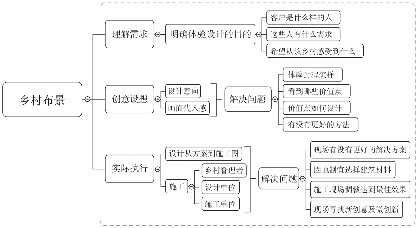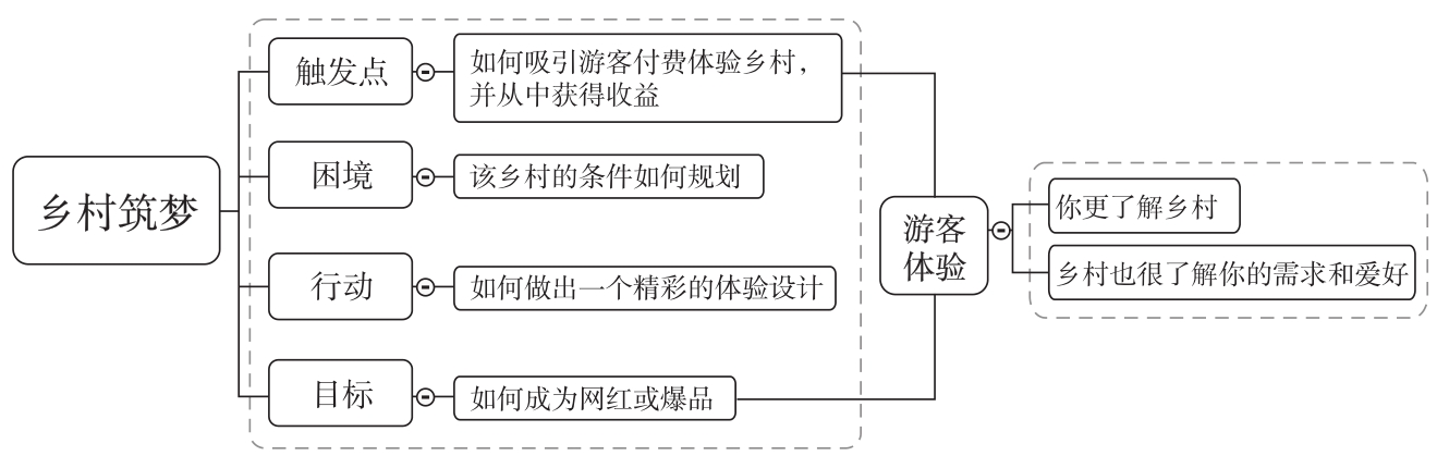 《设计思维》一书提出:一个完整的故事结构由以下四部分组成:“触发点、困境、采取的行动、达到的目标”。关于乡村的体验设计,这四部分需要深入思考。