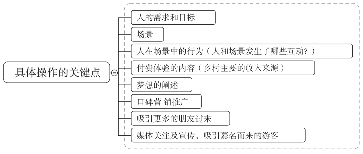 《设计思维》一书提到“筑梦”的基本要素有三个:人、场景和体验活动。由此推导出乡村体验设计“筑梦”的八个关键点。