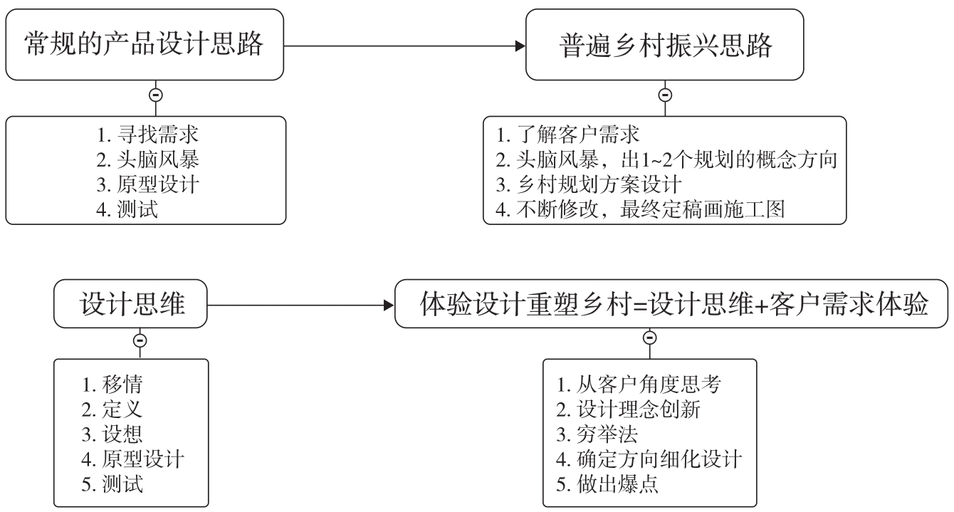 以设计思维为主要逻辑,以人为中心,强调场景与体验。乡村的建筑、室内及景观设计要三者融合为一体化的体验设计。从游客的角度来换位思考,到乡村旅游到底要体验什么内容?体验要达到什么目标?体验如何形成量化的指标来评价?