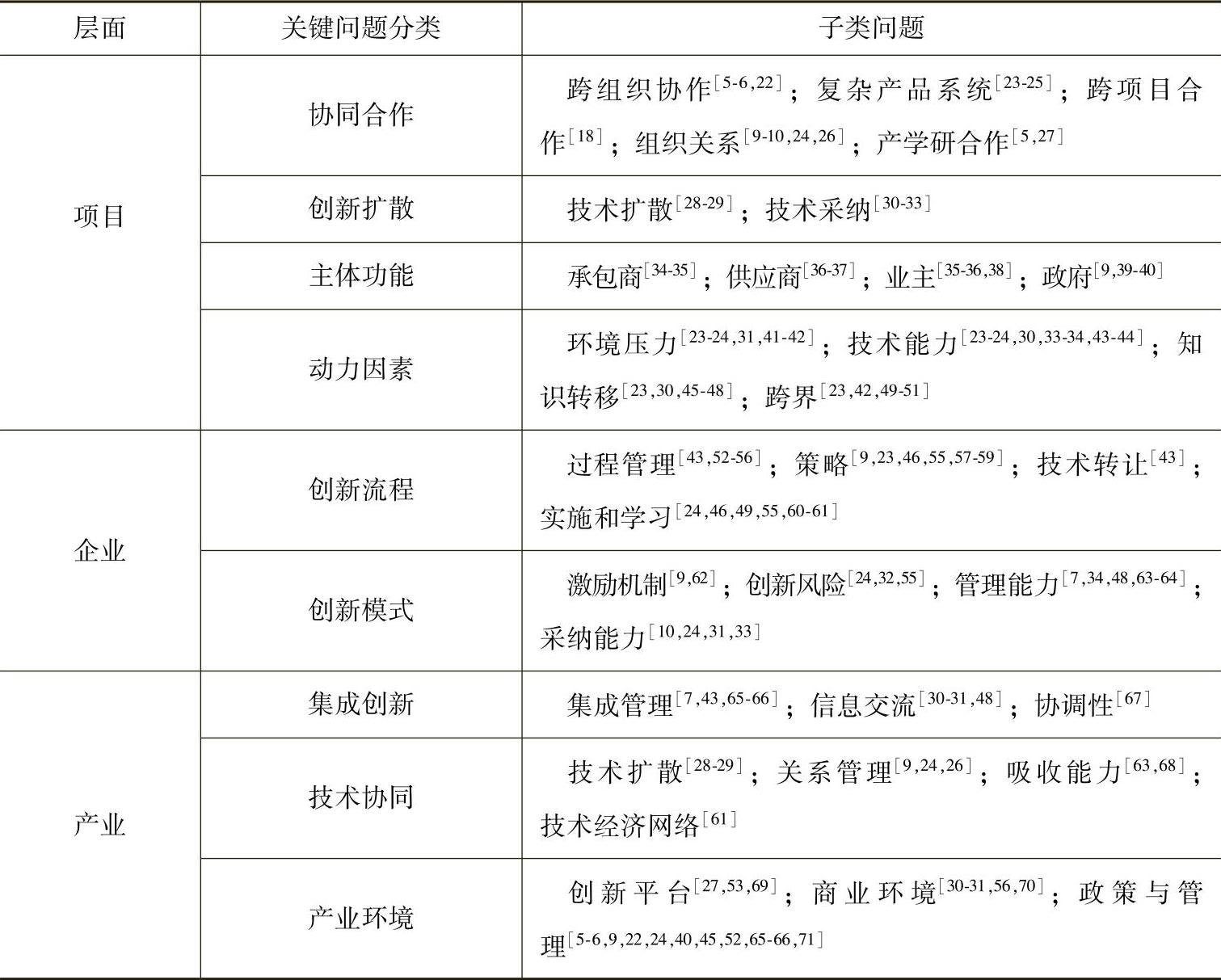可以从项目、企业、产业三个层面对工程项目技术进行创新,具体研究分类如图1-2所示。