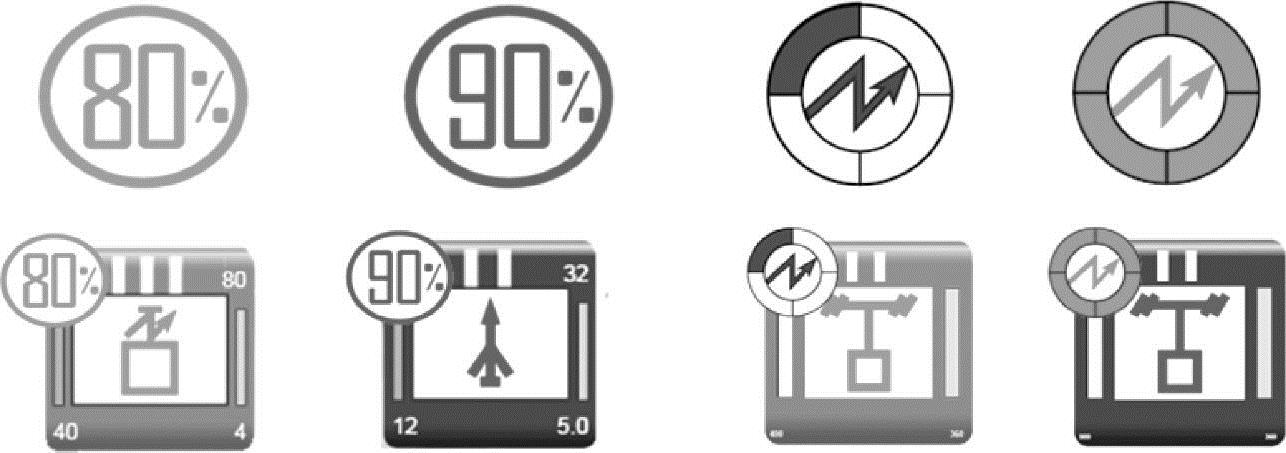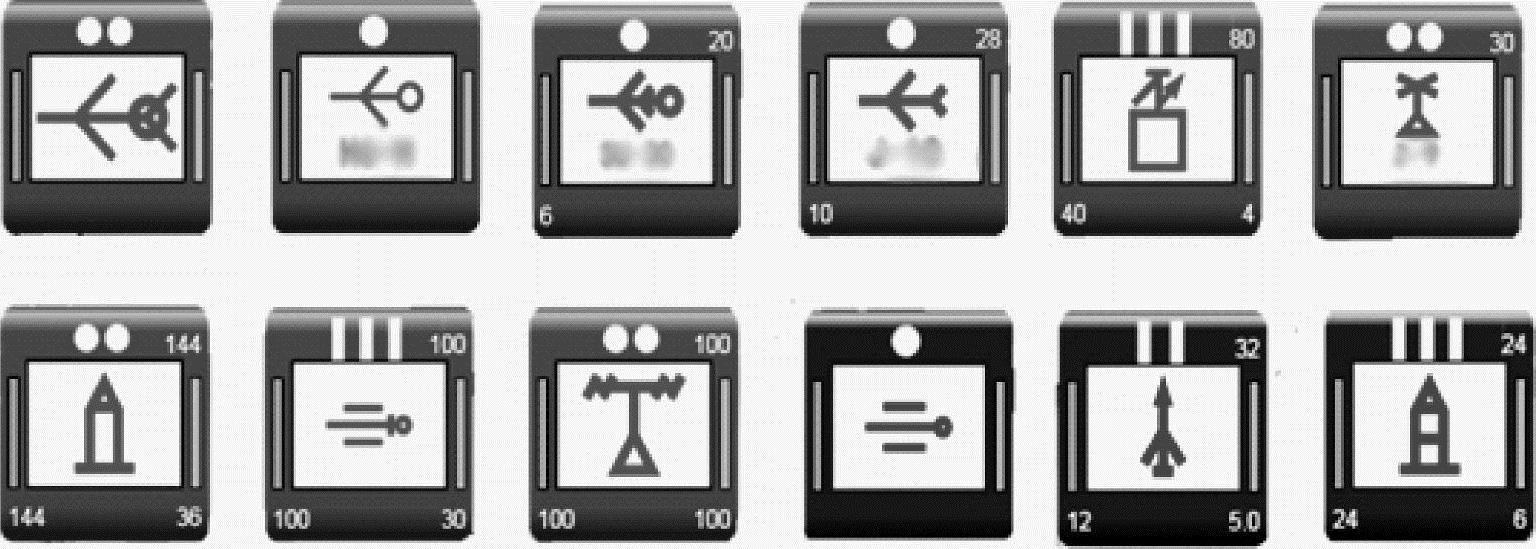状态注记主要用于标示作战力量或各种地物当前的具体状态,譬如当前的损伤程度、战斗力剩余值、遭受敌方电磁压制的等级、部队士气与补给情况。典型的状态注记如图1.8所示。
