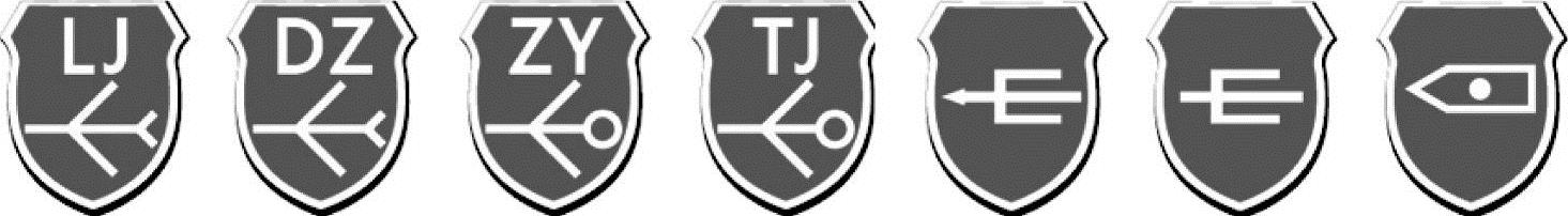 命令注记,就是用来表示各种行动命令的符号。推演各方命令注记的含义通常保持一致,但是底色和各方单位棋子保持一致。可以在盾牌图形的基础上加上代表不同行动的图形来表示命令注记,如图1.7所示。