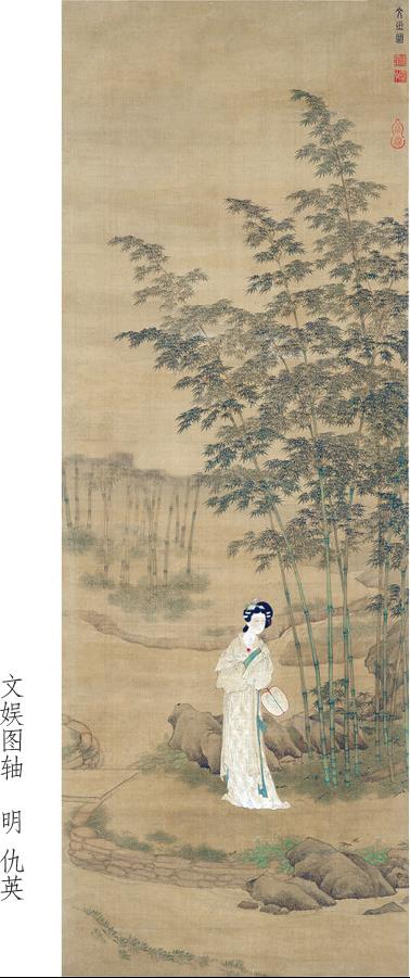 注53 天气寒冷,美人衣衫却单薄。夕阳之下,她倚靠着长长的青竹。