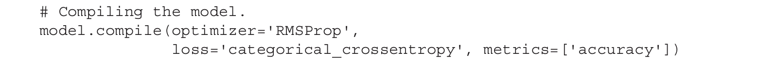 在TensorFlow 2.0中编译模型时,可以为给定模型选择一并使用的优化器、损失函数和度量指标: