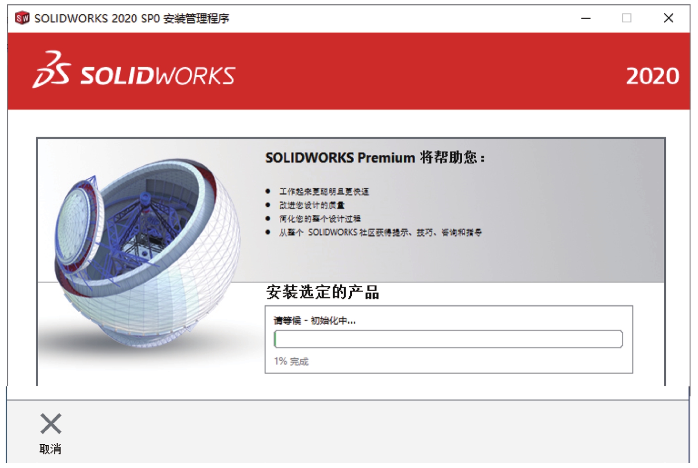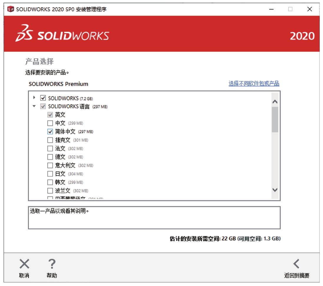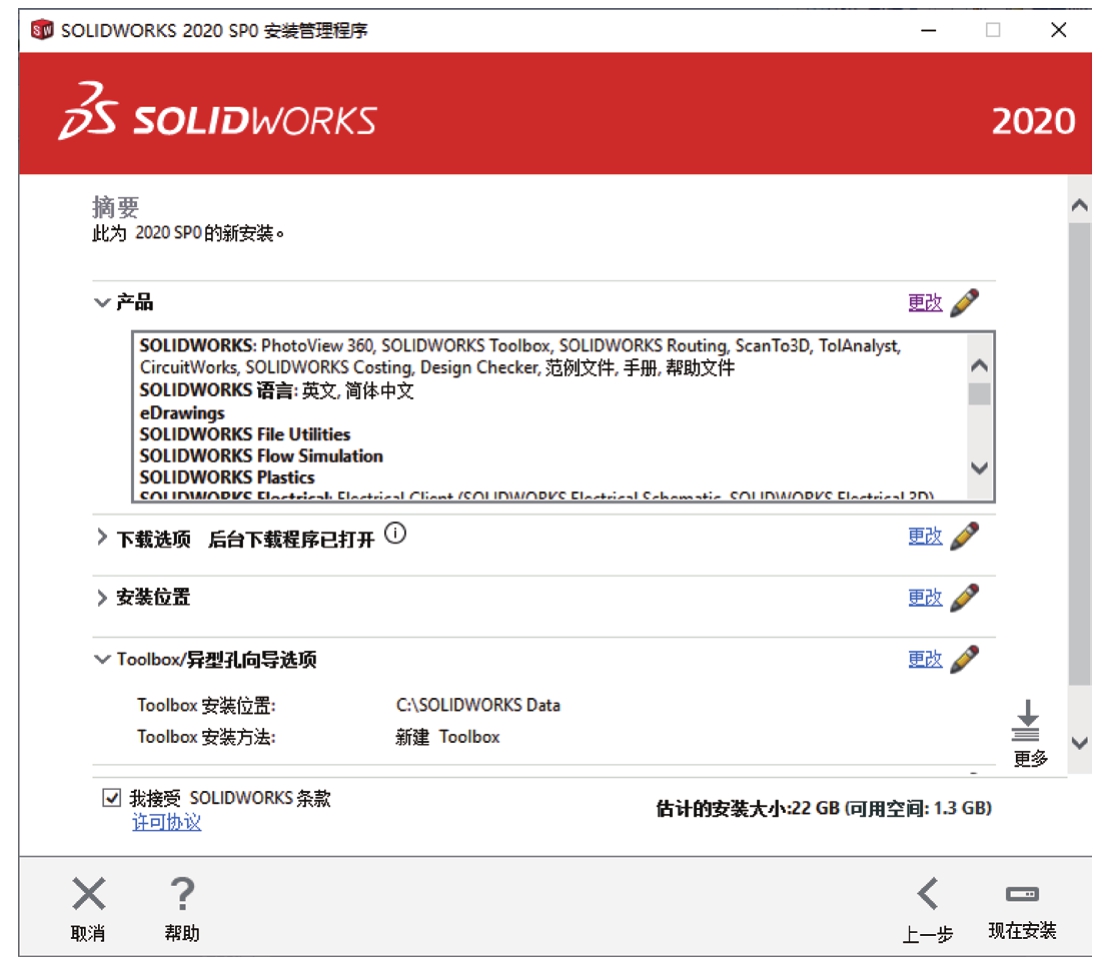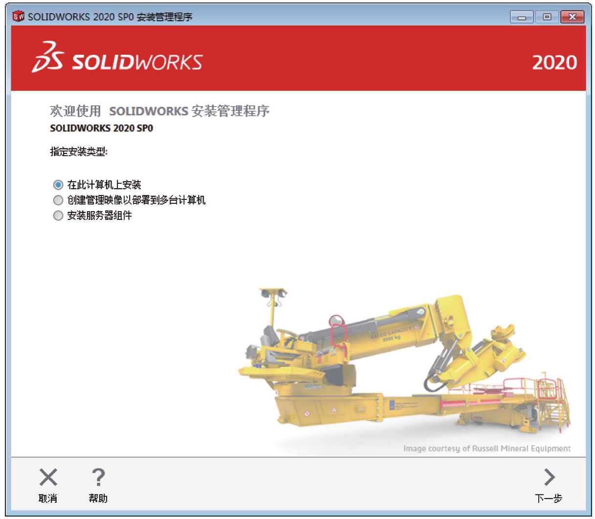 步骤2 在图1.1所示的SolidWorks 2020 SP0安装管理程序对话框中单击“下一步”按钮,系统弹出如图1.3所示的对话框。