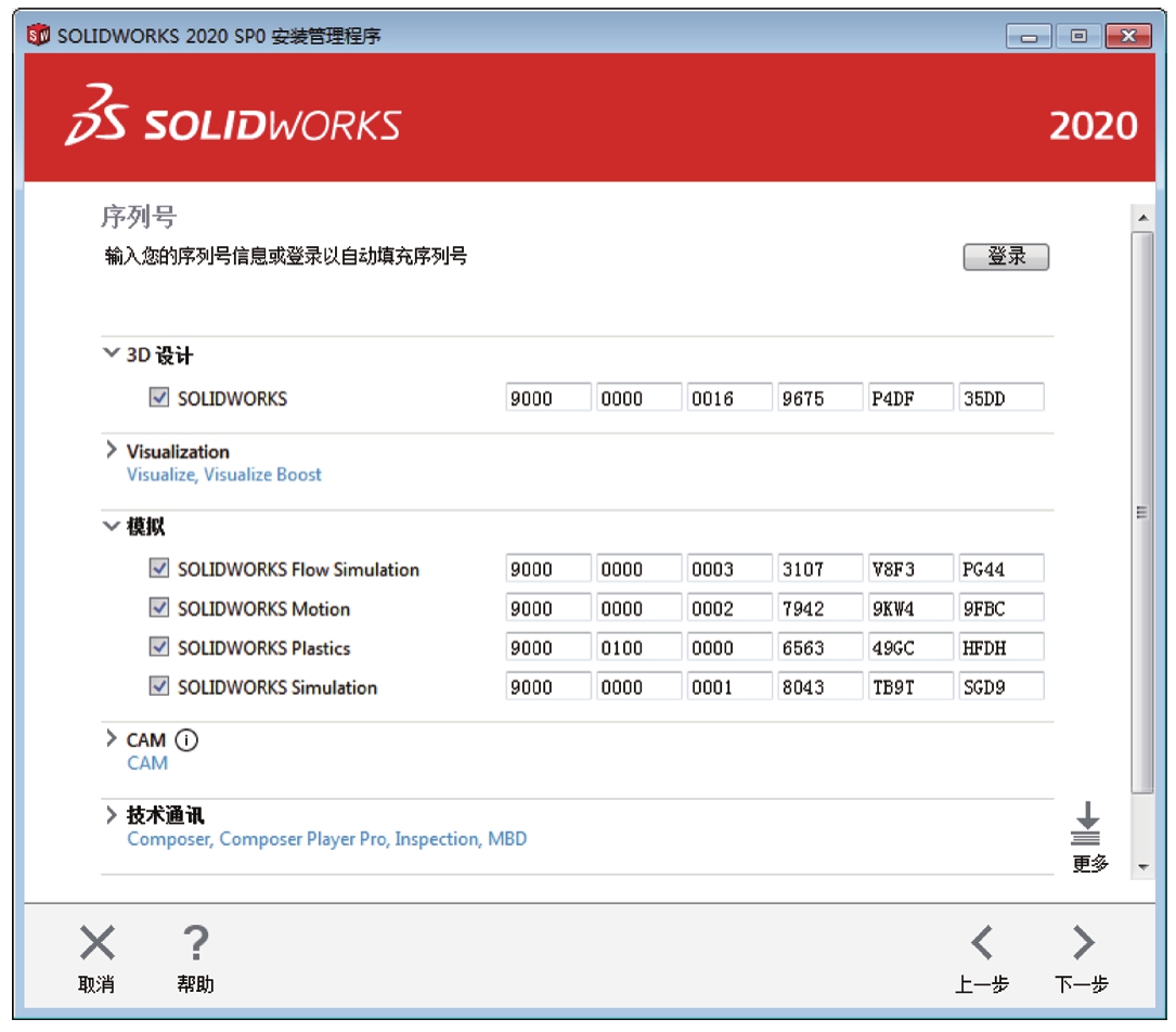 步骤3 在图1.3所示的SolidWorks 2020 SP0安装管理程序对话框中输入官方授权的许可序列号,然后单击“下一步”按钮,系统弹出如图1.4所示的对话框。
