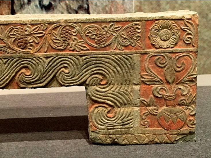值得注意的是,近年山西大同出土北魏平城时期石棺床上,出现了明确而规范的插瓶花图案。大同南郊北魏墓群M112出土的石棺床,两侧床足浮雕胆瓶插忍冬花,图案呈中轴对称。据学者研究,石棺床虽用于贵族墓葬,但其形式可能与佛教中涅槃思想有关。石棺床装饰图案多属当时的流行纹样,其中护法力士、伎乐童子、狮子、莲花纹、忍冬花纹、水波纹、联珠纹等图案,源出于佛教造像。这种中轴对称瓶花图案,也很容易让人想到古印度的插花。所以对这里出现的瓶花,我们不能肯定只是一种引进的图案呢,还是现实插花的反映。不过,即使是先引进了图案,也一定会影响到现实插花。太和十八年(四九四年)北魏迁都洛阳,这让我们可以大致想象洛阳寺庙的插花形式。大业三年(六零七年),日本遗隋使小野妹子在隋都洛阳看到的插花,应该就是由此发展而成的。
