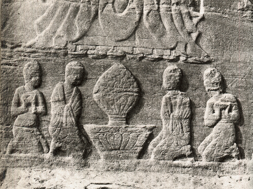 即此而言,因供佛而产生的插花活动,确实受到来自印度的影响。印度此类造像的出现,要早于中国数百年。如著名的北印度山奇大塔、巴尔胡特塔门和石栏等处的佛塔浮雕,都有以花供佛的图案。当时的信徒们认为不能具体表现佛的相貌,多以菩提树、金刚座、法轮、佛足迹等象征符号代替。浮雕上有瓶供莲花,也有大象鼻卷莲枝、灵鸟背驮花叶。莲花有盛开的,有含苞待放的,也有结出莲蓬的,栩栩如生地展现了印度早期以花供佛的形象。