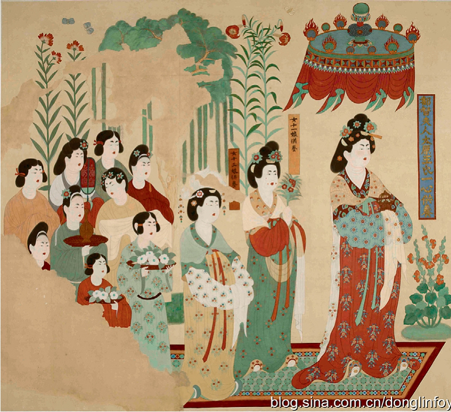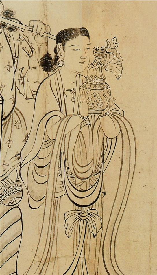 但是总体而言,这一阶段的图画雕塑,都以佛、菩萨等宗教偶像为中心,其间的供花和插花,目的是表现善男信女对佛的崇拜与虔诚,通常处于边缘位置,使用花材单调,器具随意,更谈不上艺术造型,也就是说,还不能成为一种艺术作品。