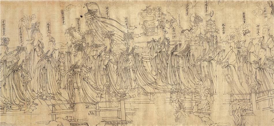 现存有确切纪年的最早雕版印刷品,唐代咸通九年版画《金刚般若波罗蜜经卷首图》中,已有飞天手捧盘花的形象。传为唐吴道子绘《释迦降生图卷》(又名《送子天王图》)中,有侍女手捧宝瓶,插莲花莲叶,隐喻初生的释迦牟尼与佛教的关系。传为唐吴道子所绘《八十七神仙卷》(实系宋人武宗元《朝元仙仗图卷》的摹本)中,多位神仙手持瓶花、盆花。传为唐人卢楞伽画的《六尊者像册》中,瓶花已成为画面中的亮点。这些作品虽然现在已认定为宋人仿作,但也认为应有唐人作品为底本。