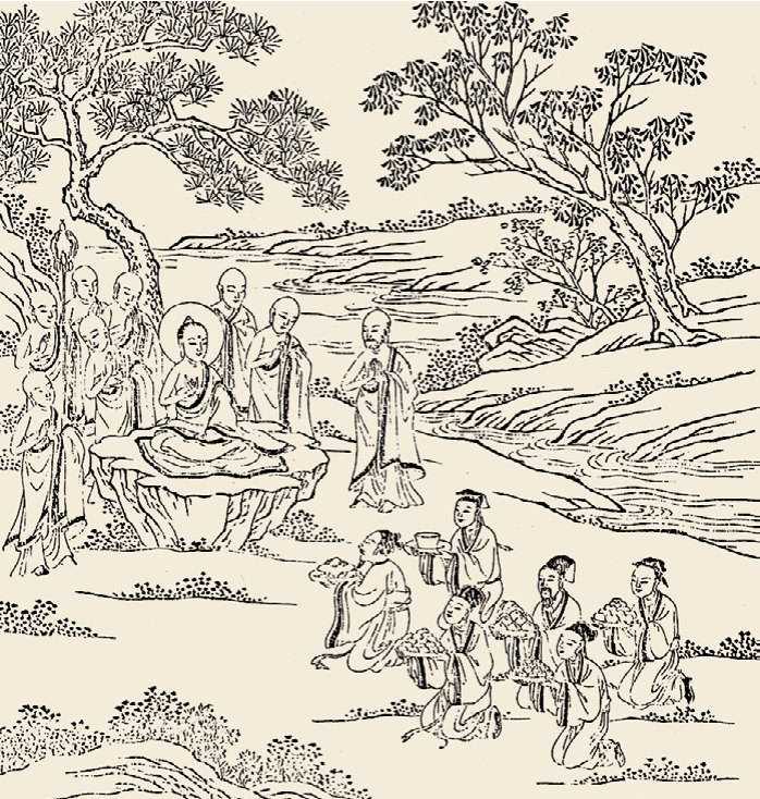 《过去现在因果经》,是《修行本起经》《太子瑞应本起经》的同本异译,南朝宋求那跋陀罗的这一译本,在各种译本中最具文学性。此节中描写两人的心理活动和对话,栩栩如生。