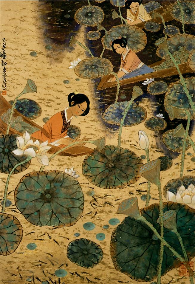 百花之中,莲花因具有香、净、柔软、可爱四德,被作为佛教的象征,尤其受到崇敬。释迦牟尼的出生、说法、法像、建筑等,都与庄严的莲花分不开,佛经中赞美释迦牟尼“手足圆满如意,软净光泽,色如莲花”,“目如广大青莲华叶”,“佛身微妙真金色,其光普照似金山,清净柔软如莲花”,比喻说法微妙为“口吐莲花”“舌灿莲花”。大乘佛教经典中影响最为深广的《妙法莲华经》(简称《法华经》),经名直译就是“像白莲花一样正确说教”。而在中国,早在春秋战国时期,莲花已为人所喜爱,《诗经》中有“山有扶苏,隰有荷华”“彼泽之陂,有蒲与荷”的咏唱,青铜器中有多种莲花造型出现,彩绘陶器中也有莲花图案。四川汉代画像砖中,有一幅三人宴饮图,右边人手持莲花作敬献状。所以,面对着佛教对莲花的崇敬,中国人并不会感到意外。