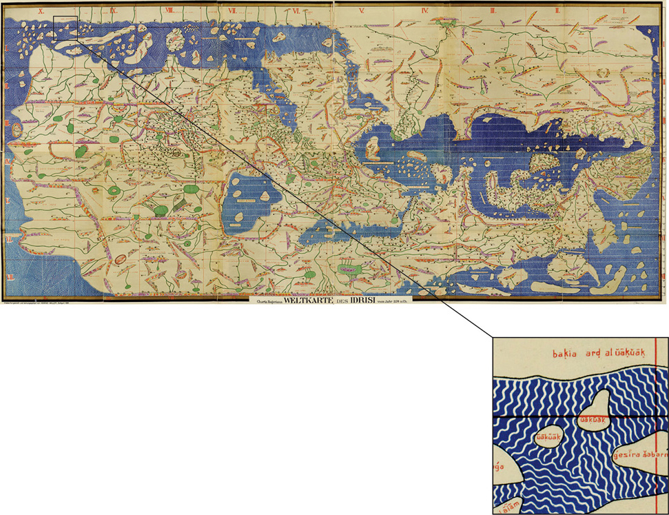 在《若格瑞纳地图》(1154)上,伊德里西画出了瓦克瓦克群岛。
