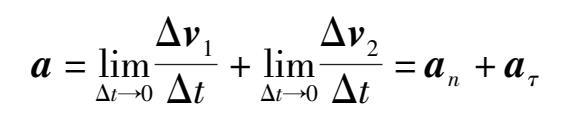 做圆周运动的质点,速度不仅大小可以变化,方向也在不断变化。如图2.15所示,质点在沿圆周由A到B的过程中,其速度的增量Δv=Δv 1 +Δv 2 。其瞬时加速度