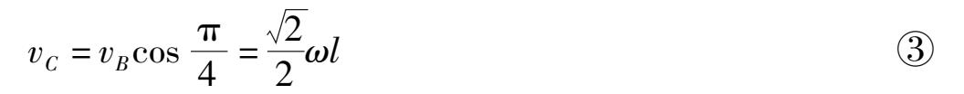 由于是匀速转动,B点的切向加速度为0,故a B 也是B点的加速度,其方向沿BA方向。因C点绕D轴做圆周运动,其速度的大小用v C 表示,方向垂直于杆CD,由图2.18(b)可知,其方向沿杆BC方向,因BC是刚性杆,所以B点和C点沿BC方向的速度必相等,故有