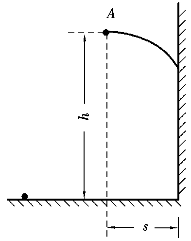 1.如图2.19所示,沿水平方向向一面竖直光滑的墙壁抛出一个弹性小球A,抛出点离水平地面的高度为h,距离墙壁的水平距离为s,小球与墙壁发生弹性碰撞(碰撞后速度大小保持不变)后,落在水平地面上,落地点距墙壁的水平距离为2s。求小球抛出时的初速度。