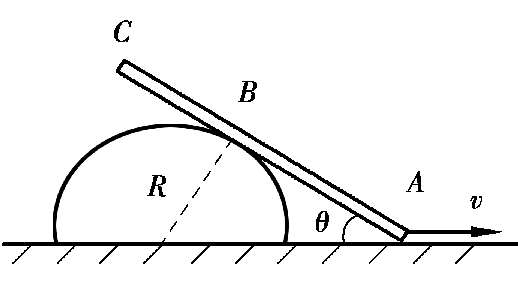 6.如图2.23所示,AC杆的A端以匀速v沿水平地面向右运动,在运动时杆恒与一半圆周相切,半圆周的半径为R,当杆与水平线的交角为θ时,求此时: