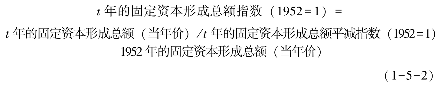 当年投资的选择。本书将固定资本形成总额视为当年的投资额,并将其通过式(4-2)推算出的固定资本形成总额平减指数折算为以1952年为基期的实际投资额。