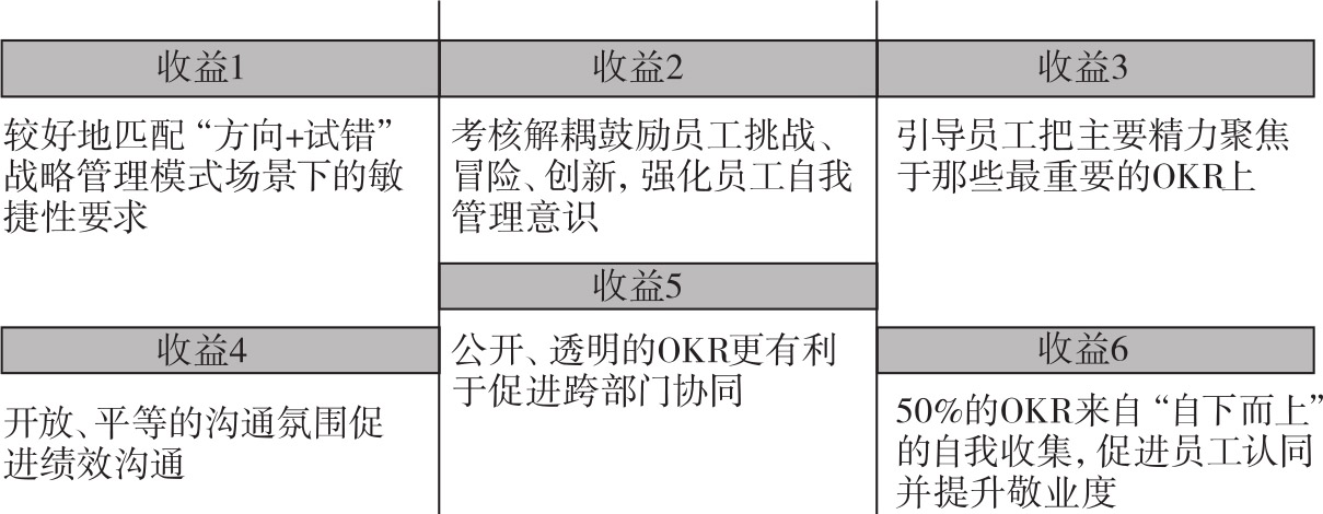 由上述比较可以发现,正确实施OKR会带来六个方面收益(见图1-3):