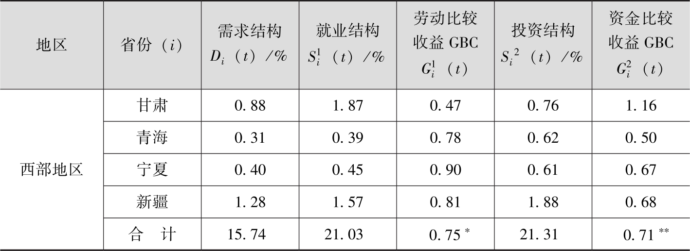 的绝对值大小来衡量并排序,作为投资与就业结构调整方向和力度的依据。下面运用该理论与方法,分析中国东、中、西部三大区域经济结构与产业结构的失衡状况,并给出结构优化的结论——投资与就业指南。