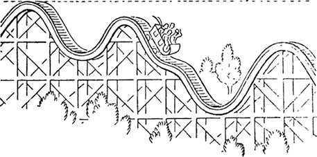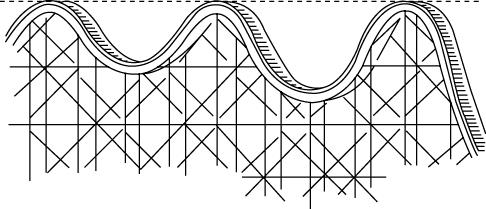 对于这个理想实验,我们可以设想有人能够完全消除一直伴随着运动的摩擦。他决定用这一发现来建造一个过山车,并亲自研究如何建造。从起点(比如距地面100英尺)开始,小车将会跑上跑下。通过试错法,他很快就发现必须遵循一个非常简单的规则:他可以把轨道建成任意形状,只要轨道上任何一点都不高于起点。如果小车自始至终能够没有摩擦地运动,那么在整个行程中,他想让小车的高度达到100英尺多少次就可以多少次,但绝不能超过这个高度。在实际的轨道上,由于摩擦的作用,小车永远也达不到起点的高度,但我们这位假想的工程师并不需要考虑这一点。