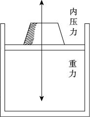 假定有一个容器,用一个能自由移动的活塞将它封住。容器中有一定量的气体,保持温度恒定。起初活塞静止在某个位置,可以通过减重或加重而使之上升或下降。要把活塞下推,必须用力来抵抗气体的内压力。根据运动论,这种内压力的机制是怎样的呢?构成气体的数目极大的粒子正在朝四面八方运动。它们撞击容器壁和活塞,像掷到墙上的球一样弹回来。大量粒子的这种持续撞击反抗着向下作用于活塞和重物的重力,使活塞保持在一定高度。在一个方向上是恒定的重力,在另一个方向上则是分子的大量不规则碰撞。如果达成平衡,所有这些小的不规则的力对活塞的净作用必须等于重力的作用。