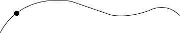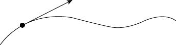 在曲线运动的一般情形中,“速度”、“速度的变化”和“力”这些词是什么意思呢?先谈谈“速度”。假定有一个很小的物体沿着曲线从左向右运动,这样一个小物体通常被称为“质点”。在下图中,曲线上的点表示质点在某一时刻的位置。对应于这个时刻和位置的速度是什么呢?伽利略的线索再次暗示了引入速度的方法。我们必须再次运用想象力去设想一个理想实验。在外力的影响下,质点沿曲线从左到右运动。假定某一时刻在图中的点上,所有这些力都突然停止作用,那么根据惯性定律,运动必定是匀速的。当然,我们实际上永远也不可能使物体完全摆脱外界的影响。我们只能推测“如果……,那么会发生什么情况?”,再根据由此得出的结论以及它们是否与实验相一致来判断我们的推测是否恰当。