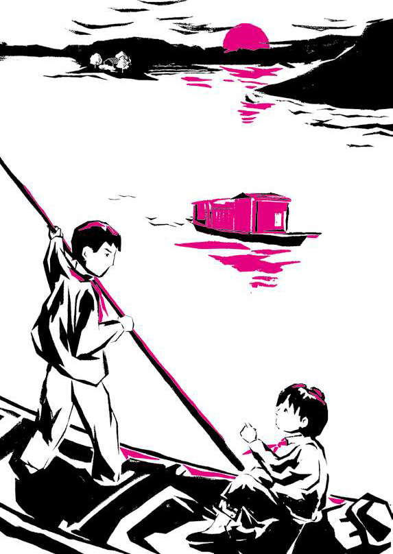 受到班主任的鼓励打气,青菱开心得不行。心情大好的青菱蹦蹦跳跳地向学校门口的运河边跑去。由于和赵老师聊天耽误了一会儿,青菱走出校门时,学生们大部分已经散去了。青菱到了运河埠头,哥哥烟雨正坐在小船上无聊地等她。烟雨在五年级三班。十一岁的他瘦高的个子,远远看去像一个半大小伙子。运河里的那只小船是兄妹俩专门上下学的交通工具,他们天天一起撑船上学,一起撑船放学回家。