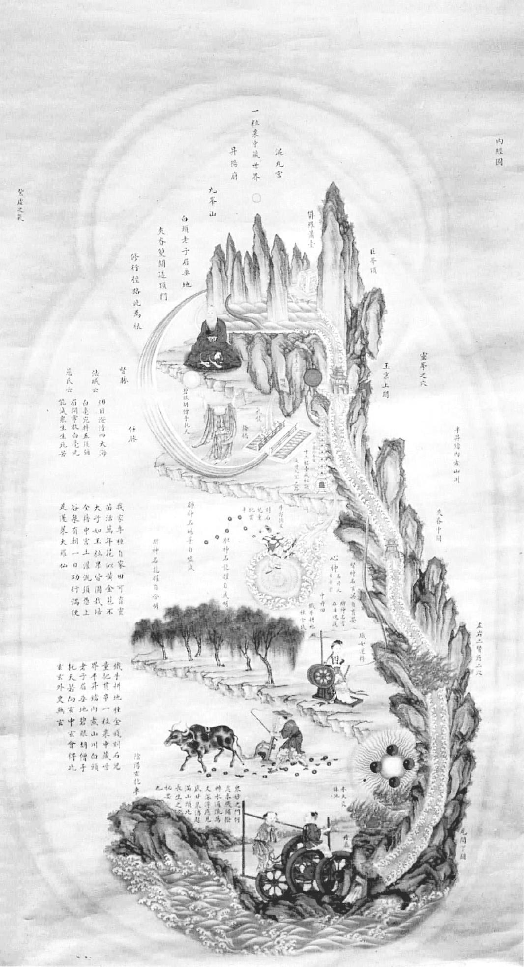 养生是先秦道家几千年来的一贯思想。延年益寿,人同此心,世人于此莫不关注。中国现存养生术可分为通论、食养、导引、炼丹等几大类。养生的目的是延年益寿,康健无疾。这幅《内经图》就是用来帮助使用者修炼养生术而专门绘制的。