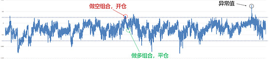 上图选取了品种A和品种B,进行了价差分析,从价差序列可以看出,两个品种的价差长期在一定范围内波动,通过统计模型找到合适的开仓点位(即上下虚线的位置),大概率可以获取价差回归的收益。