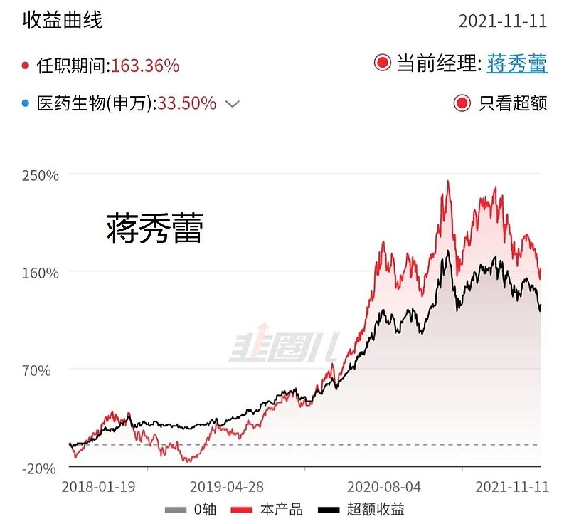 下图黑线分别是他们相对申万医药的超额收益,数据来源于韭圈儿: