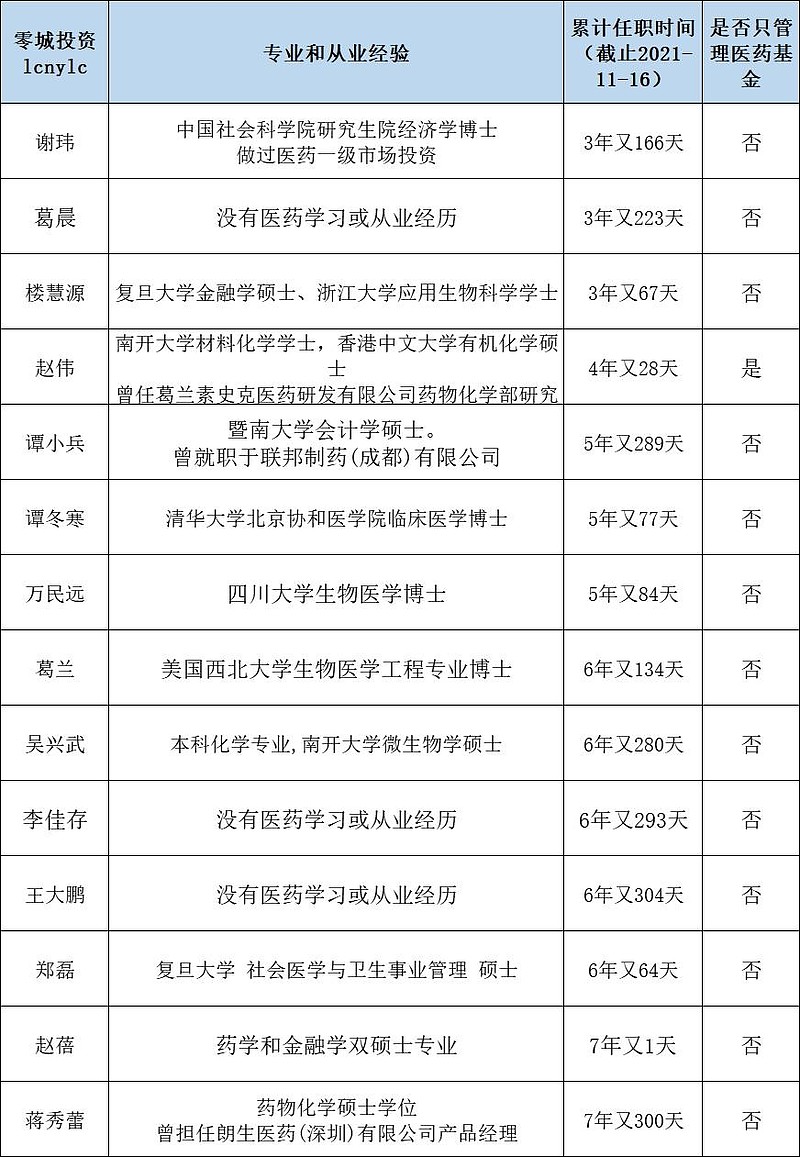 赵蓓的从业经验很丰富,而且既学过医,又学过金融,是比较理想的配置。