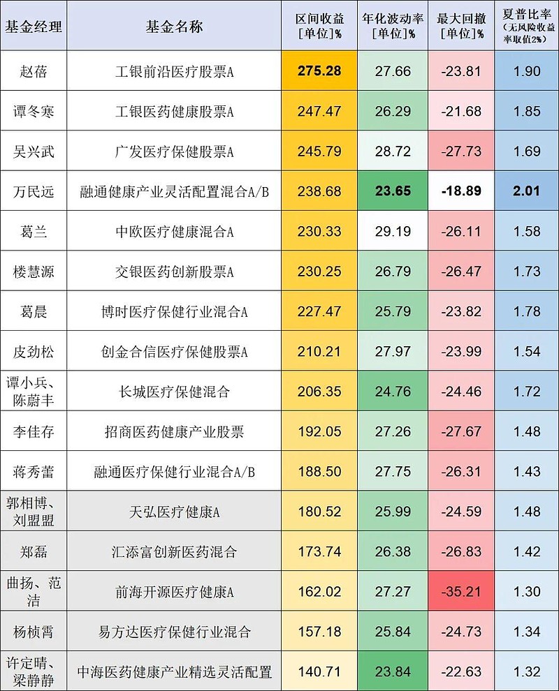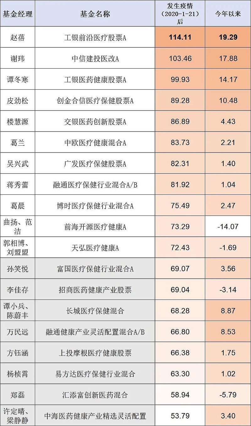 尤其是万民远和范洁。他们分别是2019、2020年的医药基金冠军,但是次年业绩表现就比较一般。