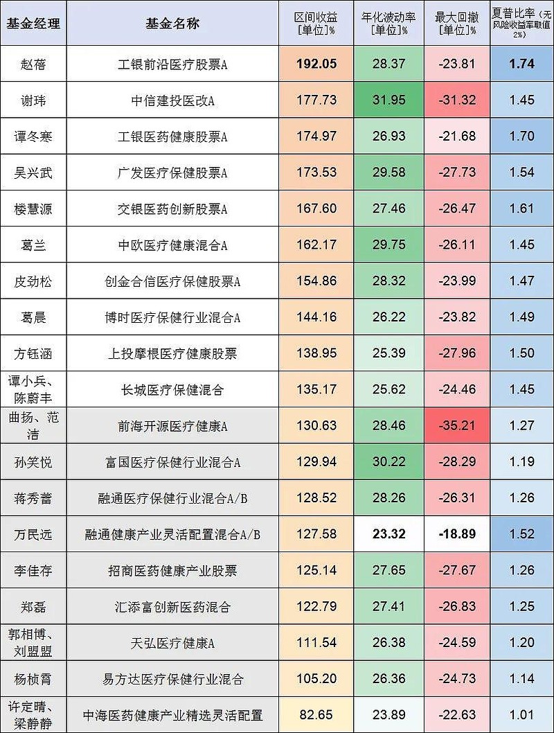 我觉得赵蓓的代表作工银前沿医疗(001717)很适合作为医药行业的标杆,短中长期业绩都很好。如果你发现你买的医药基金各个区间都差她一截,那可以取关了。人家中间还经历了生孩子休产假。