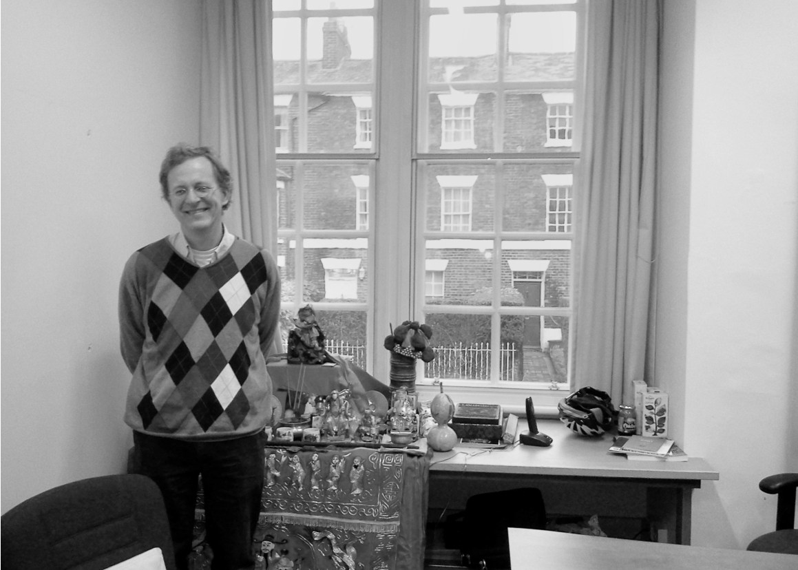 正式拜访已经是一个月以后的事了。教授英文名为“Barend J. Terhaar”,中文名为“田海”。教授说自己很喜欢中文名,“田海,沧海桑田,很有意境”。我马上问可否叫他“田教授”,并开玩笑说,“田教授在中国知名度很高哦,因为他家曾先后用过28个保姆,还专门有一部中国电影”。网上简介中已知田教授是牛津的“Shaw(邵)教授”。所谓“邵教授”,即是由邵逸夫先生捐赠设立的教授席位。牛津大学的教授既有永久的属于牛津大学的教授席位,也有根据各种社会捐赠命名设立的教授席位。