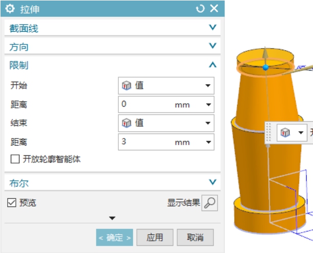 10 拉伸距离为3,创建拉伸特征作为瓶口,如图2-23所示。