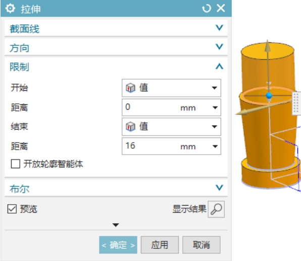 ,拉伸距离为16,创建拉伸特征,如图2-20所示。