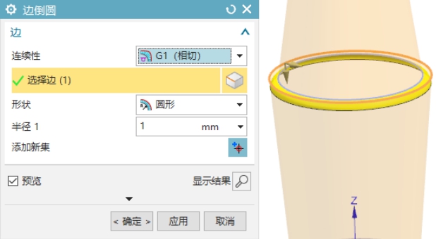 单击【主页】选项卡【特征】组中的【边倒圆】按钮