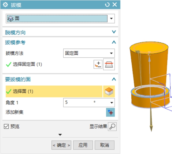 ,创建拔模特征,和之前的拔模形成相对特征,如图2-21所示。