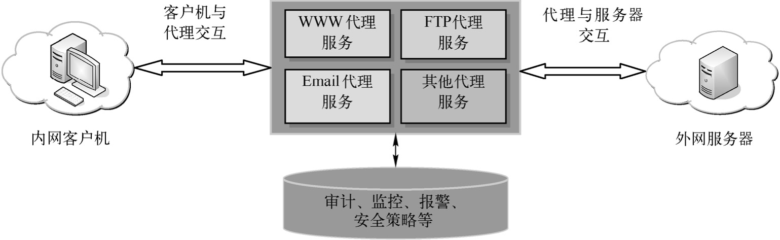 应用层代理技术也称为应用层网关(Application Gateway)技术,由于它工作在应用层,可以代理HTTP、FTP、SMTP等协议,确保内网用户在Web访问、收发邮件等时的安全。Web应用防火墙实际上就是HTTP的代理服务。