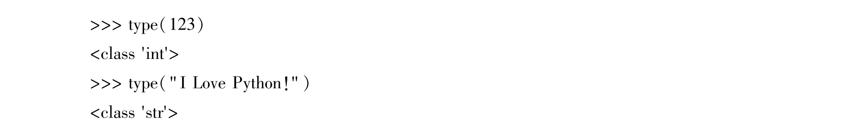 通过查询,验证了数字123的数据类型是整型,"I Love Python!"的数据类型为字符串类型。