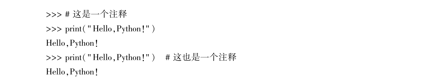 从符号“#”处开始,直到换行处结束,此部分内容都作为注释的内容。Python是一门解释型语言,当Python解释器遇到“#”符号后,会自动跳过这段代码,继续向下执行。