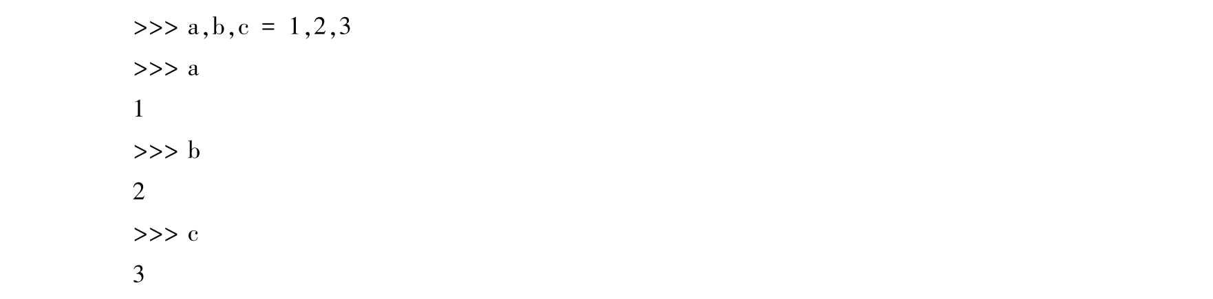 与C语言不同,Python语言允许同时为多个变量赋同一个值。例如: